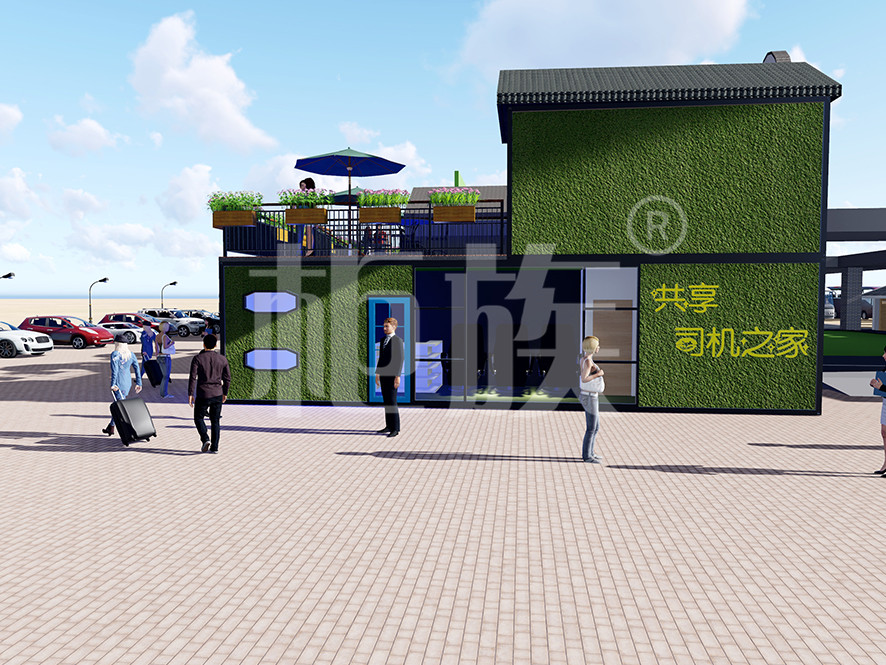 我們針對不同車流量的服務區,設計了不同大小和造型的集裝箱休息室,并延展了其功能,包括電動車充電樁、太空倉、單間、按摩椅、洗衣機、沖涼房等。